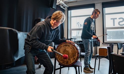 Vorige week kwamen ouders en begeleiders samen om te zien én te ervaren wat de woensdagochtend bij RICK betekent voor ons Special Art Team. Het hele jaar door werkt de groep aan allerlei creatieve activiteiten, waaronder dans, muziek en theater. De groep gaf een enthousiast percussie-optreden onder begeleiding van Ad Triepels.